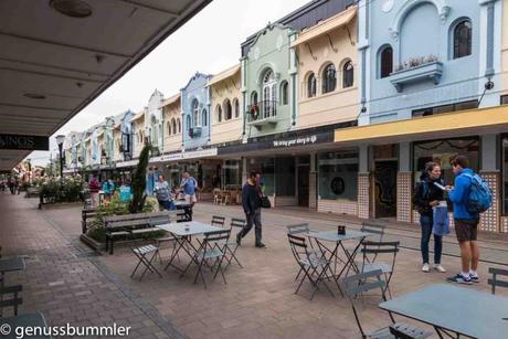 Die „alte" Regent Street wurde in den 30ern des letzten Jahrhunderts erbaut und war seit jeher eine beliebte Einkaufsstraße. In den 90ern wurde die Straße zur Fußgängerzone umgebaut. Durch das Erdbeben wurden die Gebäude beschädigt, aber zum Glück nicht allzu stark. Auf Initiative der Shop- und Restaurantbesitzer wurden die Gebäude wieder hergestellt und die Straße konnte so 2013 wieder geöffnet werden. Die Straße mit den bunten, zweistöckigen Häusern ist ein Kleinod in Christchurch. Hier kann man an den Schaufenstern vorbei schlendern, einen Kaffee oder auch ein Bier trinken oder leckere Cookies essen.