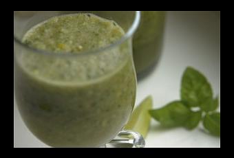 Grüner Smoothie aus Matcha, Basilikum und Apfel