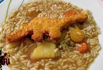 Als Hauptgang gab es Curry mit Hähnchendino (eigentlich für die Tochter gedacht, aber da noch so viel übrig war gab’s für jeden von uns auch noch einen