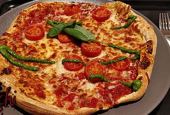 Pizza Margherita mit Basilikum und Pesto