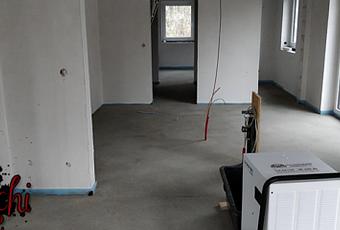 Am 14.11.2019 stand der nächste große Meilenstein an: der Estrich wurde eingebracht. Dies markiert für uns das Ende der großen und auch meistens schmutzigen Teilen der Bauarbeiten. Also stand an diesem Tag noch einmal ein richtiges Rumgeschmaddere an. Die Bautrockner, welche schon seit einiger Zeit bei uns im Haus standen, hatten das ganze schon sehr sehr gut ausgetrocknet. Der Putz war eigentlich schon fast trocken. Naja, das sollte sich an diesem Tag wieder ändern – leider.