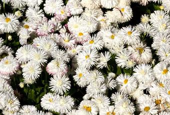 Bellis perennis hybrides fühlt sich an sonnigen oder halbschattigen Standorten wohl.
