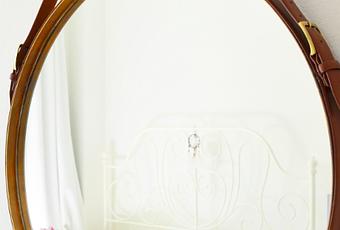 Ein einfacher Spiegel trifft alten Ledergürtel. Eine lässige Kombination.
