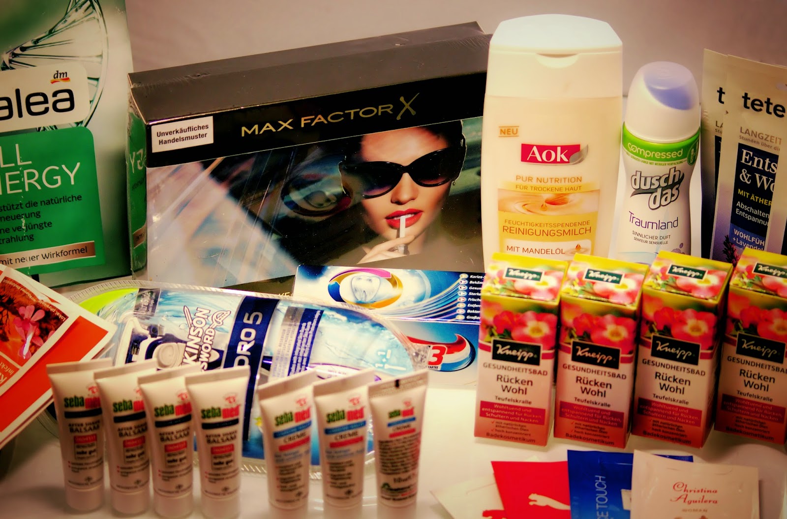 Marie kann nun testen was das Zeug hält! Lipgloss, Feuchtigkeitscremes, Reinigungsmilch, Parfum-Proben, Badezusätze, Rasierer, Zahnpflege und vieles, vieles mehr war enthalten.