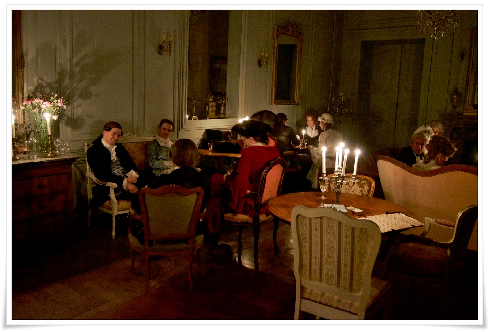 Wie üblich gab es einen gewissen Ablaufplan, nach dem sich dann auch die Auswahl der mitzunehmenden Kleidungsstücke richtete. Neben der Morgengarderobe sind das Tages- und Jagdkleidung für Spaziergänge und Tanzstunde sowie Galarobe für den Abend. Da kommt einiges zusammen, aber genau das ist es ja auch, was Spaß macht... wenn man die Sachen hat, möchte man sie schließlich auch tragen.
