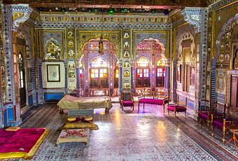 Im Mehrangarh Fort ist auch das prunkvolle „takhat vilas“ zu besichtigen, das persönliche Appartment von Maharadja Takhat Singh.