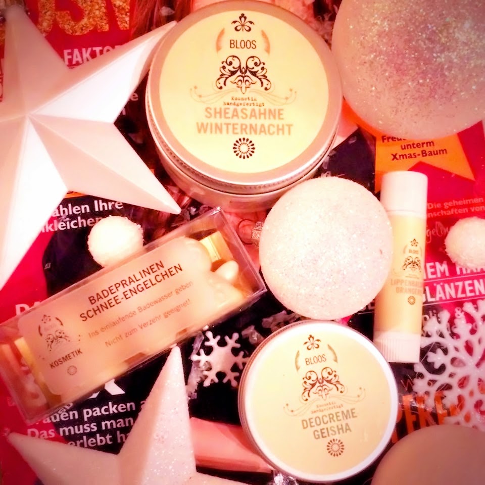 Vielen, vielen Dank an Bloos-Kosmetik für das Beteiligen am Adventskalender. Ich werde in Kürze alle diese Produkte für mich selbst bestellen und einen Testbericht veröffentlichen. Weil einfach alles so lecker geduftet hat. Außerdem finde ich genial, dass alle eure Produkte handgemacht und vegan sind. Und die Verpackung der Produkte ist wunderhübsch! Perfekt auch als Geschenk geeignet. Macht weiter so! Ich bin sehr froh über euren Shop gestolpert zu sein und werde mit Sicherheit noch ganz oft bei euch shoppen!