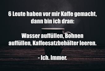 Auf Facebook teilen Vorige Folgende 6 Leute haben vor mir Kaffe gemacht, dann bin... Autor des Artikels : istdaslustig Zum Original-Artikel 6 Leute haben vor mir Kaffe gemacht, dann bin ich dran: Wasser auffüllen, Bohnen auffüllen, Kaffeesatzbehälter leeren. - Ich. Immer. Hier geht es zum Artikel Mehr Lustiges auf www.istdaslustig.de Auf Facebook teilen Vorige Folgende Das könnte Ihnen gefallen Mehr