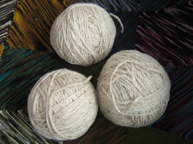 Meine große Schwester räumt grad bei Muddern im Abstellraum auf , aus, um unddabei fiel ihr eine dunkelbraune Platiktüte von Jeans Többens in Vechta in die Hände. Kleine Schwester strickt dauernd, also kommt das Kraut nicht in den Müll, sondern dorthin ;) Als Studentin hab ich bei Többens bisweilen Jeans geshopped, den Laden gibts schon ewig nicht mehr, aber ich weiß noch, dass die eine XXXXXXXXL Jeans draußen hängen hatten als Aussage : wir haben was für JEDE Größe. Dazu fällt mir dann noch die eine weiße Jeans von mir ein, die so einen komischen orangen Fleck auf dem linken Oberschenkel hatte, der ums Verrecken nicht rauswollte .... bis ich mit Dr. Beckmanns Fleckensalz in den Krieg zog ;) Die Jeans hatte ich für viel teuer Mark dort gekauft. Gut soweit. Der Inhalt der Tüte : 3 Bälle mit insgesamt ca 700g naturfarbener rustikaler Wolle, ein schöner Ton leicht karamellig, kommt auf dem Bild leider nicht über. Ich denke, mit Nadelstärke 5-6 sollte es ganz gut zu stricken sein. Allerdings ... was macht man aus solchem Garn ? Es ist eher struppig, nicht annähernd so weich, wie man es heute wünscht. Das Garn ist aber auch mindestens ..... 30 ? Jahre alt. Ich kann mich nur schemenhaft erinnern, es gekauft zu haben, als Strangware auf dem Stoppelmarkt. Damals gabs in den Gewerbezelten noch Wolle zu kaufen. Was ich daraus machen wollte ? Keine Ahnung, zu der Zeit hab ich eher Kleinkinderpullis für mein Patenkind gestrickt ( der wird dies Jahr 35...) und ganz sicher nicht aus solchem Garn. Ein Pulli war zB mit Leuchtturm, Möwen, oben Himmel mit Wolken unten blaue See, Gr. 104 ...Egal ;) bei solch alten Schätzen geh ich gedanklich immer zurück in die Vergangenheit und mir fällt das eine oder andere ein , zB dass es in dem einen Jahr auch getwistetes Garn im Gewerbezelt gab, nach Wunsch zusammengestellt. Ich hab mir da was in hellblau gekauft, Sabine in rot.Ja jetzt hab ich hier also 700g antik liegen ... was könnte ich damit anstellen ? Erstmal werde ich wohl ein Probeläppchen stricken und mittels Waschmasch die Wasch- und Filzeigenschaften ermitteln. Und dann sehen wir weiter. Auf jeden Fall hab ich mich echt gefreut, als Sabine damit ankam und mir wurde fast ein wenig sentimental.Eine alte Strickmaschine hab ich auch noch geerbt, von den Schwiegis meiner Schwester. Eine Knittax. Mal gucken, wenn ich Zeit und Lust hab, setz ich mich damit auseinander und versuche, eine Bedienungsanleitung dafür aufzutreiben.