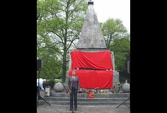 Diese Empörung teilten auch die Veranstalter und Gäste der traditionellen Gedenkfeier vor Ort. Obwohl das Bezirksamt Pankow eine unverzügliche Reinigung veranlasst hatte, konnten die Spuren noch nicht gänzlich beseitigt werden. Das wertete aber niemand als Sieg. Elke Breitenbach (Mitglied des Abgeordnetenhauses und des Parteivorstandes) sagte u.a. dazu: „Wir haben ihnen den 1. Mai nicht gelassen, wir lassen ihnen auch nicht den 8. Mai. Und keinen anderen des Jahres!“ Beeindruckend war, dass ein Passant spontan um Gehör bat und auch im Namen seiner Frau gegen diese neonazistische Aktion protestierte.
