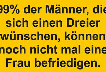 Auf Facebook teilen Vorige Folgende 99% der Männer, die sich einen Dreier wünschen,... Autor des Artikels : istdaslustig Zum Original-Artikel 99% der Männer, die sich einen Dreier wünschen, können noch nicht mal eine Frau befriedigen. Hier geht es zum Artikel Mehr Lustiges auf www.istdaslustig.de Auf Facebook teilen Vorige Folgende Das könnte Ihnen gefallen Mehr