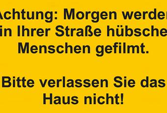 Auf Facebook teilen Vorige Folgende Achtung: Morgen werden in Ihrer Straße hübsche... Autor des Artikels : istdaslustig Zum Original-Artikel Achtung: Morgen werden in Ihrer Straße hübsche Menschen gefilmt. Bitte verlassen Sie das Haus nicht! Hier geht es zum Artikel Mehr Lustiges auf www.istdaslustig.de Auf Facebook teilen Vorige Folgende Das könnte Ihnen gefallen Mehr