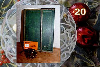 Es handelt sich dabei um einen Paperblanks Jade Kalender 2012 im Format Midi. Wer ihn sich noch einmal genauer angucken möchte, kann es bei Paperblanks gerne tun. Ich hatte den Kalender ursprünglich für mich selbst bestellt, aber versehentlich eine Nummer größer, als ich eigentlich vorhatte. Daher wird dieses Exemplar nun zur Verlosung freigegeben.