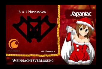 Gestern gab es das erste von 24 Türchen; heute präsentieren wir euch die Nummer 2. Der heutige Gewinn wird von Crunchyroll gesponsort. Hinter dem 2. Türchen habt ihr heute die Möglichkeit euch einen von 3 Monatspässen zu sichern, um euch den Start in das neue Jahr zu versüßen.
