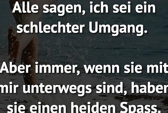 Auf Facebook teilen Vorige Folgende Alle sagen, ich sei ein schlechter Umgang.... Autor des Artikels : istdaslustig Zum Original-Artikel Alle sagen, ich sei ein schlechter Umgang. Aber immer, wenn sie mit mir unterwegs sind, haben sie einen heiden Spass. Hier geht es zum Artikel Mehr Lustiges auf www.istdaslustig.de Auf Facebook teilen Vorige Folgende Das könnte Ihnen gefallen Mehr