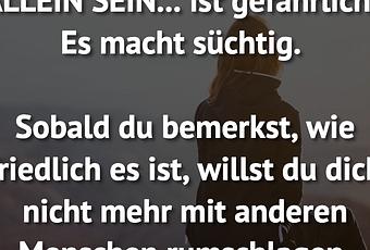 Auf Facebook teilen Vorige Folgende ALLEIN SEIN... ist gefährlich. Es macht... Autor des Artikels : istdaslustig Zum Original-Artikel ALLEIN SEIN... ist gefährlich. Es macht süchtig. Sobald du bemerkst, wie friedlich es ist, willst du dich nicht mehr mit anderen Menschen rumschlagen. Hier geht es zum Artikel Mehr Lustiges auf www.istdaslustig.de Auf Facebook teilen Vorige Folgende Das könnte Ihnen gefallen Mehr