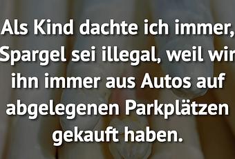 Auf Facebook teilen Vorige Folgende Als Kind dachte ich immer, Spargel sei illegal‚... Autor des Artikels : istdaslustig Zum Original-Artikel Als Kind dachte ich immer, Spargel sei illegal‚ weil wir ihn immer aus Autos auf abgelegenen Parkplätzen gekauft haben. Hier geht es zum Artikel Mehr Lustiges auf www.istdaslustig.de Auf Facebook teilen Vorige Folgende Das könnte Ihnen gefallen Mehr