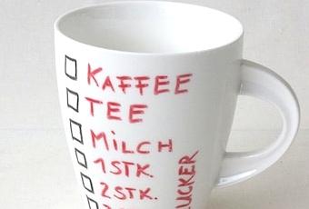 Ihr braucht dazu nur Porzellanstifte und eine Tasse. Die Anleitung auf der Verpackung der Stifte befolgen und es kann eigentlich nicht's schief gehen. So lange die Farbe noch nicht angetrocknet ist könnt ihr sie sogar noch wegwischen.