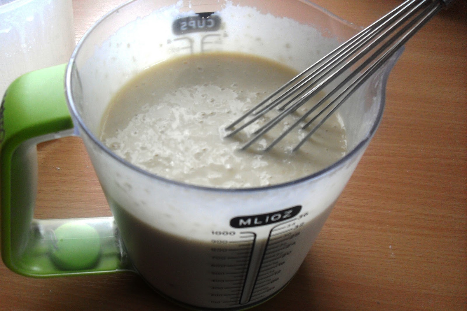 Zutaten:300 g Weizenmehl2 TL Backpulver2 TL Natron4 EL Zucker2 Prisen Salz6 EL Öl400 ml Milch oder Buttermilch2 Eier (Gr. M)Zubereitung:Das Mehl in einen hohen Messbecher oder eine Schüssel sieben und mit den trockenen Zutaten gut vermischen.Milch, Öl und Eier ebenfalls in einen Messbecher oder eine Schüssel geben und gut verrühren.