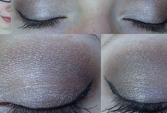Von der Palette habe ich alle Lidschatten benutzt - den dunklen Ton nur ein klein wenig zum Abdunkeln in der Lidfalte. Der Schimmer gefällt mir sehr gut, es gibt auch keine groben Glitzerpartikel. Die Lidschatten decken alle gut und lassen sich leicht verblenden. Ein klein bisschen gebröselt haben sie, aber nicht allzu viel.