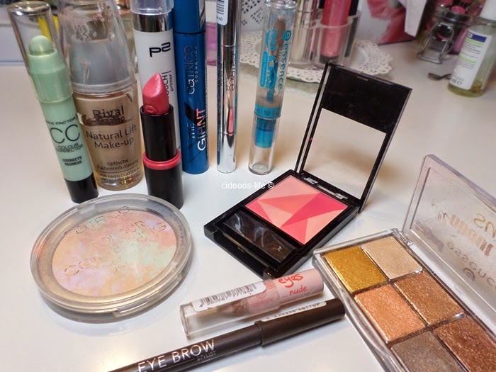 Max Factor Colour Corrector Corrects Redness*Catrice Light Reflecting Concealer 005*Catrice Colour Correcting Powder*Catrice Eyebrow Stylist '030 Brow-n eyed peas'*Essence Lash & Brow Gel MascaraCatrice The Giant Waterproo MascaraEssence All About Sunset Palette*Essence Big Bright Eyes Highlight it nude*UMA Blush Get Freaky*Essence Long Lasting Lippenstift 13 Love me*
