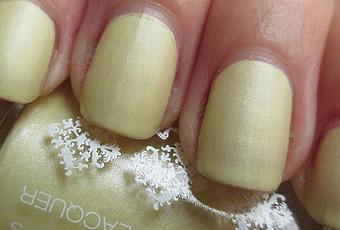 Der Nagellack ist matt. Na ja, mehr in Richtung porcelaine... -> würde essence heute schreiben ;) Ich habe zwei Schichten aufgetragen und er scheint doch etwas durch. Aber dies ist nicht weiter schlimm. Mir gefällt's.