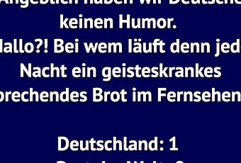 Auf Facebook teilen Vorige Folgende Angeblich haben wir Deutsche keinen Humor.... Autor des Artikels : istdaslustig Zum Original-Artikel Angeblich haben wir Deutsche keinen Humor. Hallo?! Bei wem Iäuft denn jede Nacht ein geisteskrankes sprechendes Brot im Fernsehen? Deutschland: 1 Rest der Welt: 0 Hier geht es zum Artikel Mehr Lustiges auf www.istdaslustig.de Auf Facebook teilen Vorige Folgende Das könnte Ihnen gefallen Mehr