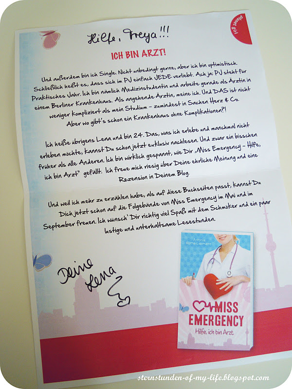 Vor ein paar Wochen bekam ich Post vom Planet Girl Verlag. An dieser Stelle erstmal vielen Dank dafür! Nun bin ich endlich zum Lesen gekommen. In dem Päckchen war außerdem ein süßer "Brief" von der Protagonistin und ein Tischkalender enthalten.