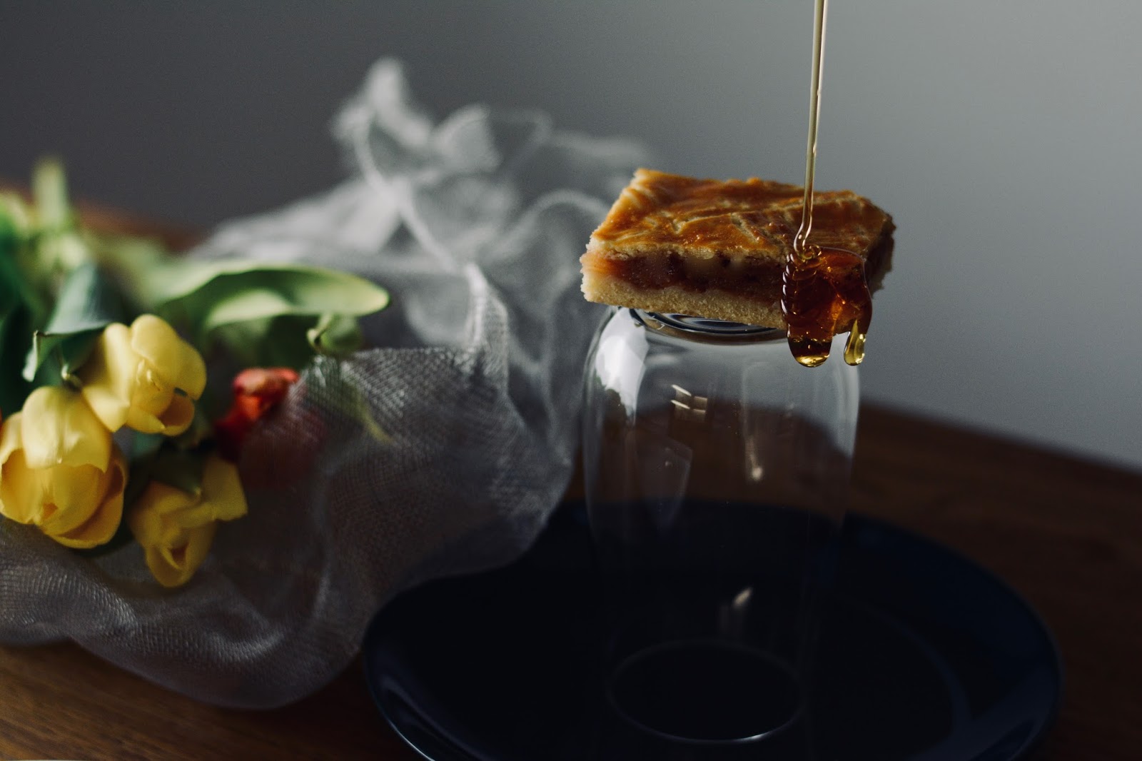 Bei diesem Blechkuchen trifft sich der klassische gedeckte Apfelkuchen mit einer feinen Honignote, untermalt von intensivem Espresso.