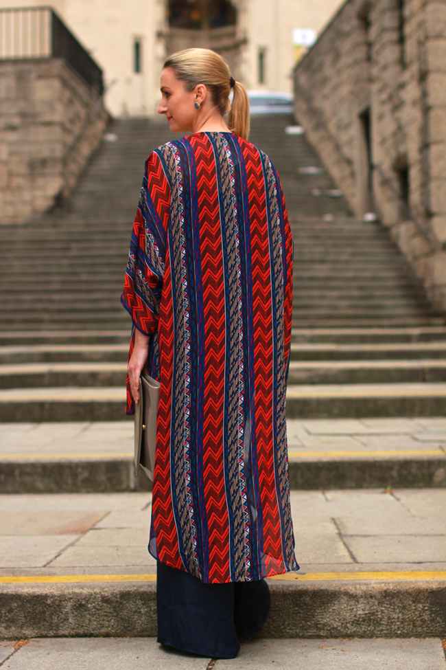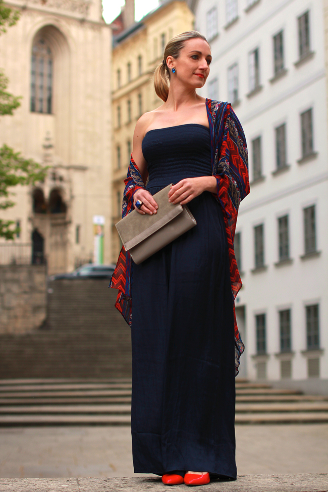 In meinen beiden letzten Looks habe ich Euch zwei sehr reduzierte Ethno-Looks gezeigt. Dafür gibt's heute die volle Trend-Dröhnung. Die Farben, das Muster, die weichen Stoffe und flatternden Schnitte sind typisch Ethno und erinnern mich an die 70er. Vor allem meinen Schatz hat dieser Look sehr an die 70er Jahre und das Musical "Hair" erinnert. Denn als er mich letzte Woche beim Zusammenstellen des Looks beobachtete, fing er an zu Grinsen, stand auf und plötzlich schallte in voller Lautstärke "Aquarius" von "Hair" durch unsere Wohnung und er tanzte lachend dazu. Obwohl ich mir (bis jetzt) nicht sicher bin, ob das ein Lachen oder Auslachen war, stand der Abend bei uns ganz im Zeichen von "Hair" und wir hatten auch noch beim Shooting verdammt viel Spaß :-) ... - Wie geht es Euch mit meinem 3. und letzten Look meiner "ethno collection"? Edel-Hippie oder eher was zum Auslachen ...?Happy hippie easter.In my last two posts I've presented two quite reduced ethno looks. Although today I'm having a whole load of ethno for you. Colors, patterns, soft fabrics and fluttering clothing remind me on ethno and the Seventies. Especially my darling reminded this look on the Seventies and musical "Hair". When he was watching me preparing this look last week, he suddenly started to grin, got up and shortly afterwards I've heard "Aquarius" from "Hair" on full blast and he was laughing and dancing through our flat. Although I'm not certain (until now) if he was laughing with or about me, we had so much fun on this evening dedicated to "Hair" - and also at our shooting :-) ... What do you think about my third and last look of my "ethno collection"? Noble hippie or something to laugh about ...?