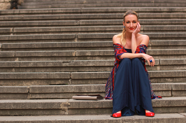 jumpsuit, kimono & ring - Forever21 / shoes - Mango / clutch - H&M / earrings - Majolie