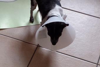 Sie bekam Medikamente gespritzt und einen “tollen” Kragen. Wobei dieser Kragen echt die Hölle war. Wenn man eh nah am Boden lebt, dann bleibt man mit dem Ding auch ständig am Boden hängen…