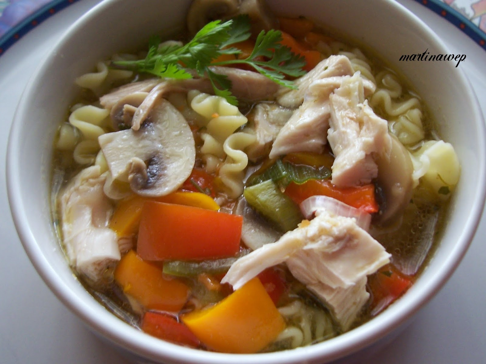 Fleisch und Gemüse wieder in die Suppe geben und mit den Nudeln nochmalaufkochen lassen.