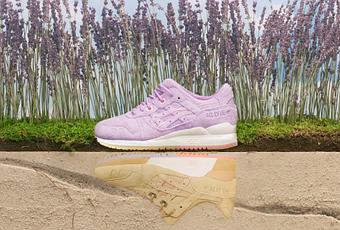 Stolz präsentiert sich die lang erwartete Kollaboration zwischen ASICS Tiger und dem Kreativkollektiv CLOT der Gründer Edison Chen und Kevin Poon in Form zweier außergewöhnlicher GEL-LYTE III. Der für das Design verantwortliche Kreativdirektor Edison Chen zeichnet mit den beiden in Sand und Lavender gehaltenen Sneakern das Bild einer blühenden Lavendellandschaft.