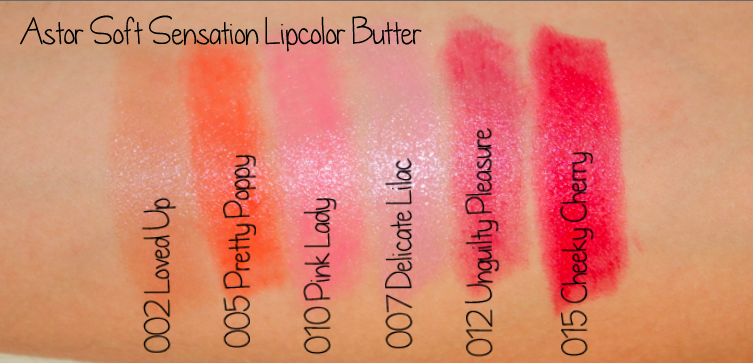 Habt ihr die neuen Lipcolor Butters von Astor schon getestet? Ich werde mir auf jeden Fall auch noch die anderen sechs Farben anschauen. Denn auch wenn die Soft Sensations mit knapp 6,00 € pro Stick kein High End sind, so haben sie es mir wirklich angetan! Weitere Swatches findet Ihr bei Paddy hier und hier.