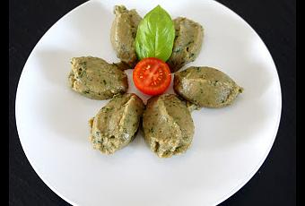 Die Aubergine halbieren, die Schnittfläche gut Salzen und dieser nach unten auf ein Backblech legen.Das Backblech in den Ofen stellen. Die Aubergine darin ca. 30 Minuten garen, sodass sie ganz weich ist.Herausnehmen und etwas abkühlen lassen, mit einem Löffel das Innere der Aubergine ausschaben, sodass nur noch die Schale übrig bleibt.Die Zwiebel grob hacken, in den Mixbecher geben, ebenso Öl, Zitronensaft, Auberginenmark sowie Salz, Pfeffer und der optionalen Gewürze/Kräuter. Mit dem Pürierstab gründlich pürieren sodass eine Paste entsteht.Diese Auberginenpaste eignet sich als Brotaufstrich oder beispielsweise als Dip.