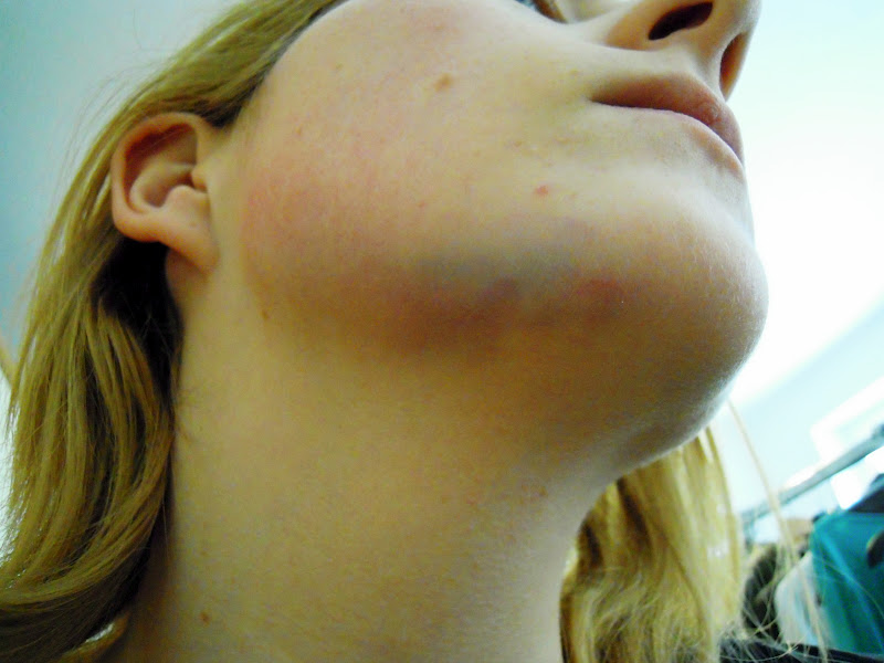 Beim gestrigen Ohnmachts-Fall den Unterkiefer geprellt; eine Durchfallerkrankung; Dehydrierung und ein grippaler Infekt.