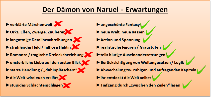 Generell sollte man eine gewisse Reife mitbringen, um die Andeutungen, Foreshadowings und anderen Kleinigkeiten, die ich in den Text eingebaut habe, entdecken und deuten zu können. Weniger geeignet ist wahrscheinlich der typische Chicklit-Leser, der eine melodramatische Romanze erwartet und seichte Unterhaltung mit Glitzersternchen wünscht, die man auch mal so nebenbei verschlingen kann.Naruel ist keine heile Welt, wer einen Ponyhof erwartet, wo die Freundschaft und Liebe immer das Böse besiegen kann, wird bei „Der Dämon von Naruel“ die ein oder andere Überraschung erleben.Vielen Dank für deine Antworten :)