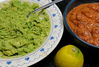 Fangen wir mit 2 fast überreifen Avocados an (die schwarzen Stellen entfernen), Saft einer halben Zitrone, 1/2 Teel Kala Namak ( muß man probieren – vielleicht etwas mehr?), weißer Pfeffer, –mit einer Gabel zerdrücken.