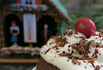 Mit geraspelter Schokolade und jeweils einer Kirsche toppen.