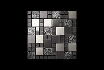 Glas und Edelstahl Mosaik Fliesen für Badezimmer, WC, Küche oder andere Räume.In Schwarz und Silber erhältlich mit den Maßen 30cm x 30cm x 8mm.