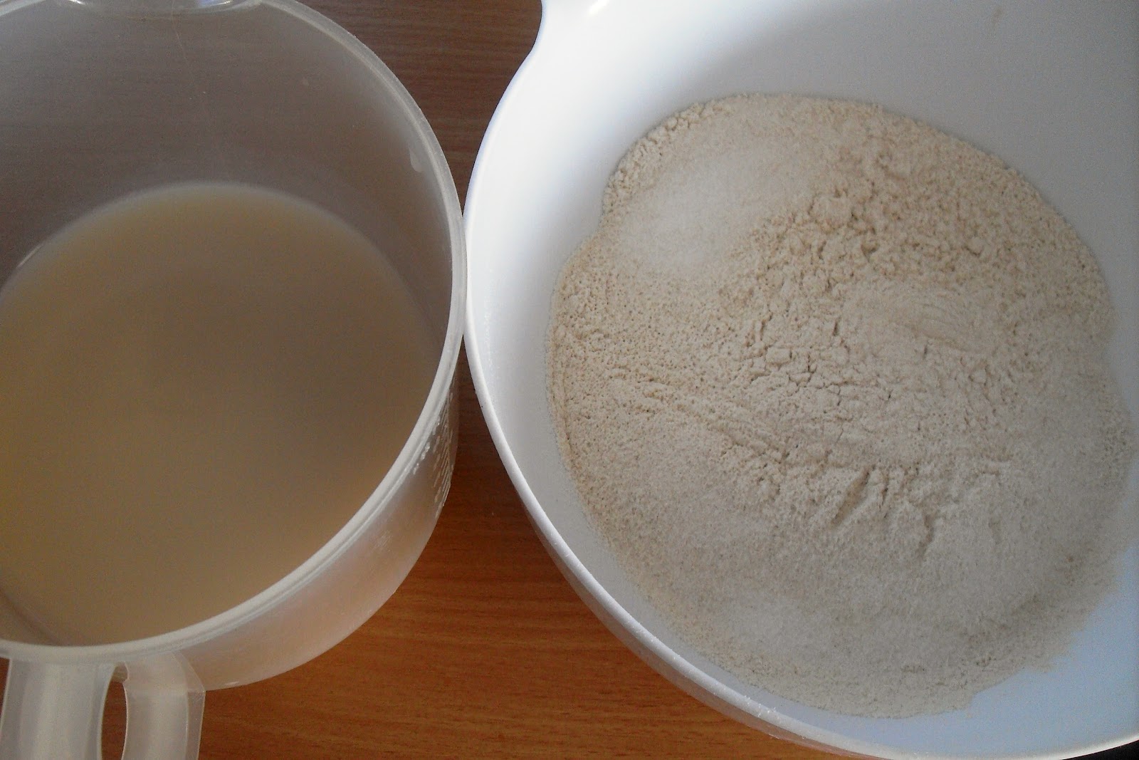 600 g Weizenmehl Typ 550Zubereitung:Das Weizenmehl Typ 1050 in eine große Schüssel sieben. Die Hefe in dem Wasser (400 ml) auflösen.Das Salz zu dem Mehl geben.