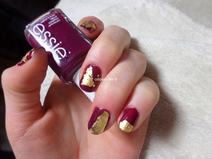 Die liebe Barbara auf Instagram hat mich zu diesem Nageldesign inspiriert. Es ist Bahama Mama mit goldenen Akzenten! :)Und ihr habt endlich wieder ein schönes Nageldesign ! :) Verwendet habe ich als Blattgold diese Zeug aus dem Essence Nail Art Designer Set, nicht mehr erhältlich :( Ich hab natürlich erstmal Bahama Mama lackiert und bisschen trocknen lassen. Meiner Erfahrung nach, klebt das Goldzeug auch wenn der Nagel fast trocken ist. Es ist natürlich ratsam, einen Top Coat darüber aufzutragen :) Ich finds echt super hübsch, auch wenn es auch sehr gewöhnungsbedürftig ist :D Ich würde gerne wissen, wie ihr das Design findet! :) ♥Was sagt ihr zu dieser Kombination?