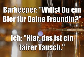 Auf Facebook teilen Vorige Folgende Barkeeper: "Willst Du ein Bier für Deine... Autor des Artikels : istdaslustig Zum Original-Artikel Barkeeper: "Willst Du ein Bier für Deine Freundin?" Ich: "Klar, das ist ein fairer Tausch." Hier geht es zum Artikel Mehr Lustiges auf www.istdaslustig.de Auf Facebook teilen Vorige Folgende Das könnte Ihnen gefallen Mehr