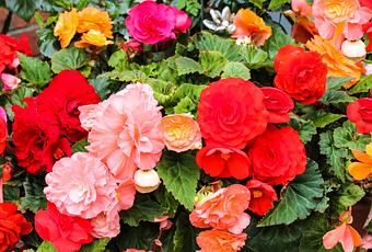 Die hängenden Knollen-Begonien ordnet der Botaniker allerdings der Pendula-Gruppe zu. Multiflora-Begonien sind gekennzeichnet durch einen kompakten und gedrungenen Wuchs, die Blüten sind teils ungefüllt oder gefüllt. Der starke Blütenbesatz erscheint in rot, gelb, rosa und auch weiß.