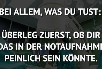 Auf Facebook teilen Vorige Folgende BEI ALLEM, WAS DU TUST: ÜBERLEG ZUERST, OB DIR... Autor des Artikels : istdaslustig Zum Original-Artikel BEI ALLEM, WAS DU TUST: ÜBERLEG ZUERST, OB DIR DAS IN DER NOTAUFNAHME PEINLICH SEIN KÖNNTE. Hier geht es zum Artikel Mehr Lustiges auf www.istdaslustig.de Auf Facebook teilen Vorige Folgende Das könnte Ihnen gefallen Mehr