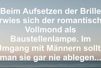 Auf Facebook teilen Vorige Folgende Beim Aufsetzen der Brille erwies sich der... Autor des Artikels : istdaslustig Zum Original-Artikel Beim Aufsetzen der Brille erwies sich der romantische Vollmond als Baustellenlampe. Im Umgang mit Männern sollte man sie gar nie ablegen... Hier geht es zum Artikel Mehr Lustiges auf www.istdaslustig.de Auf Facebook teilen Vorige Folgende Das könnte Ihnen gefallen Mehr