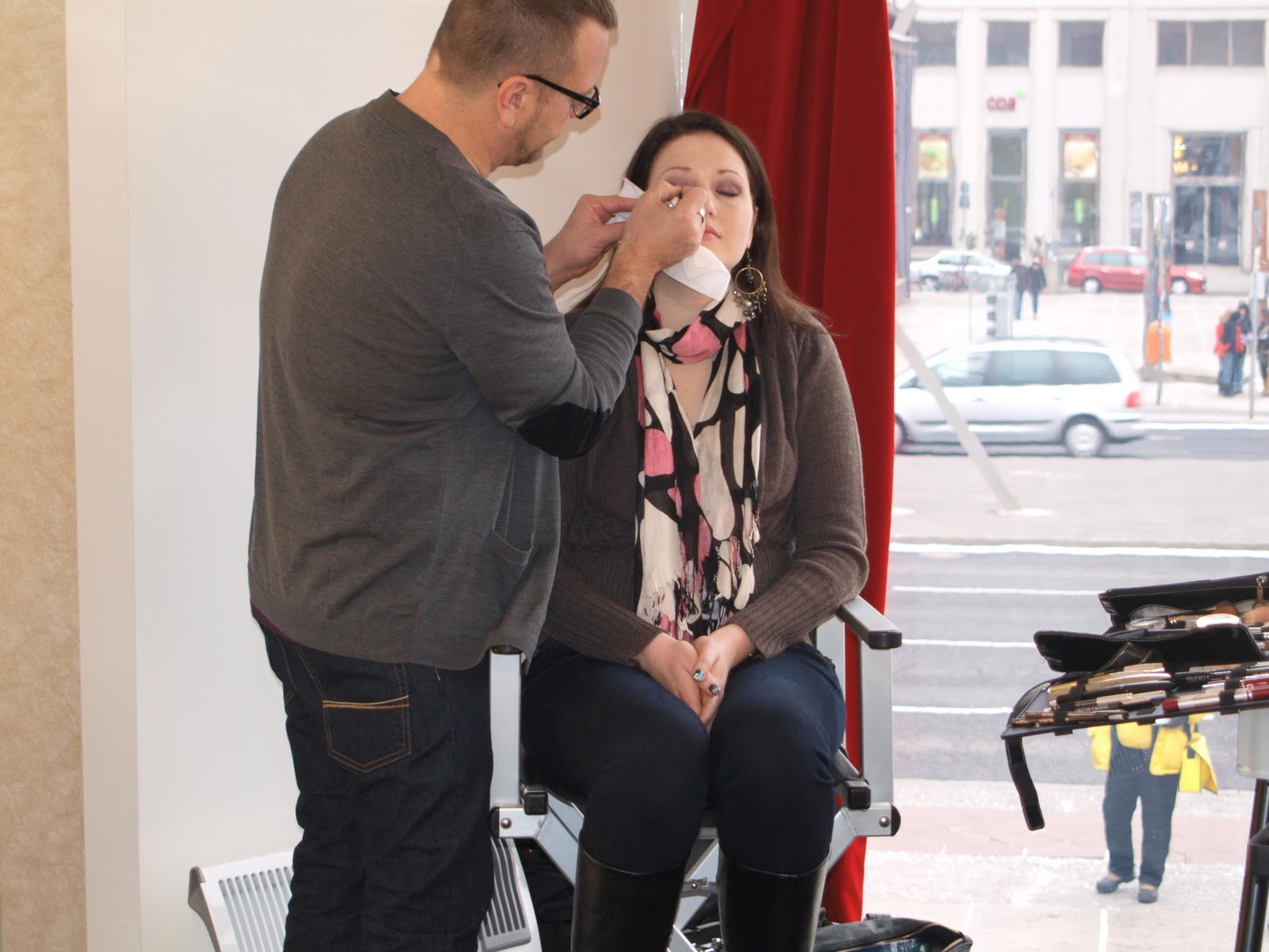 Am nächsten Morgen trafen wir uns alle zum Frühstück, checkten aus und machten uns gemeinsam in unseren Limousinen zum Potsdamer Platz ins mobile Cocobello Make-up Studio in dem wir von Andrej Baranov den Look der Berlinale gezeigt bekamen und auch selber geschminkt wurden.