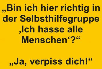 Auf Facebook teilen Vorige Folgende „Bin ich hier richtig in der Selbsthilfegruppe... Autor des Artikels : istdaslustig Zum Original-Artikel „Bin ich hier richtig in der Selbsthilfegruppe ‚Ich hasse alle Menschen‘?“ „Ja, verpiss dich!“ Hier geht es zum Artikel Mehr Lustiges auf www.istdaslustig.de Auf Facebook teilen Vorige Folgende Das könnte Ihnen gefallen Mehr