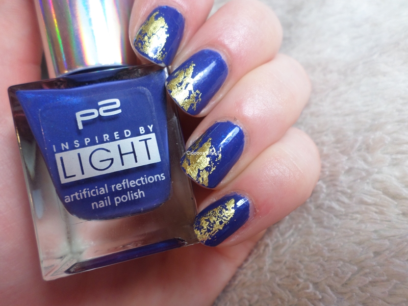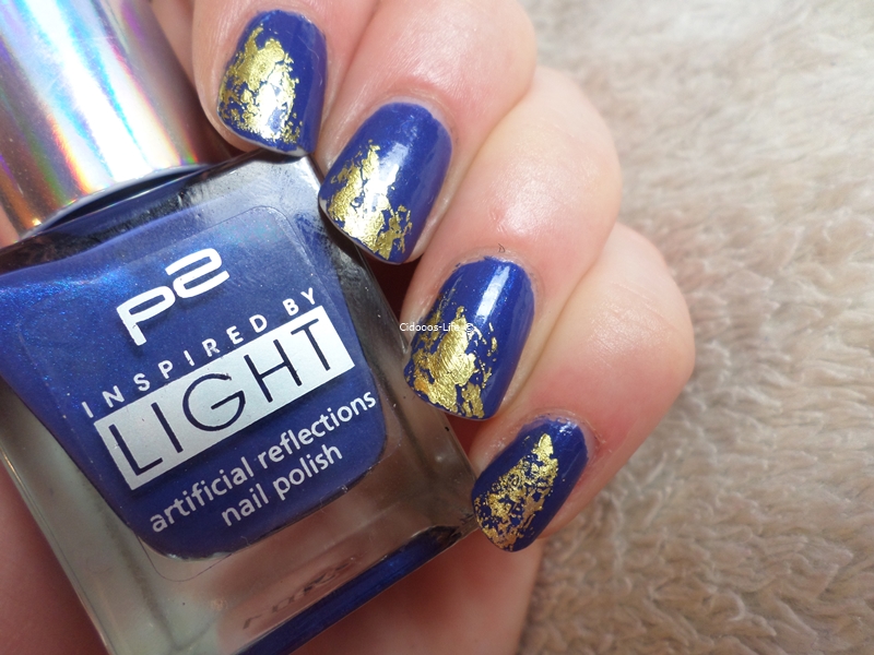 Ich hatte mal wieder Lust auf blaue Nägel und dann irgendwie Lust auf die goldenen Folie von Catherine (gibt es günstiger bei Essence).Also habe ich mir den p2 Inspired by Light Lack in luminous blue geschnappt und die goldenen Folie.